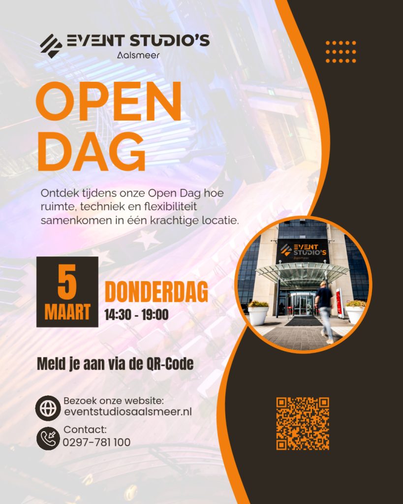 Concerten, beurzen, theatervoorstellingen, comedy-avonden, dancefeesten en exposities: Event Studio’s Aalsmeer is dé locatie voor publieksevenementen in iedere vorm.